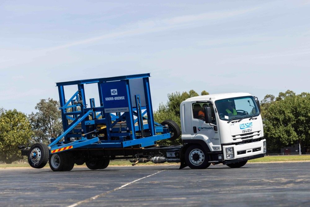 This was conducted at the DECA (Wodonga TAFE) testing and training facility in Shepparton in Central Victoria on a medium-duty Isuzu FTR 150-260, fitted with a test body customised for Knorr-Bremse.