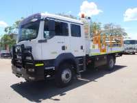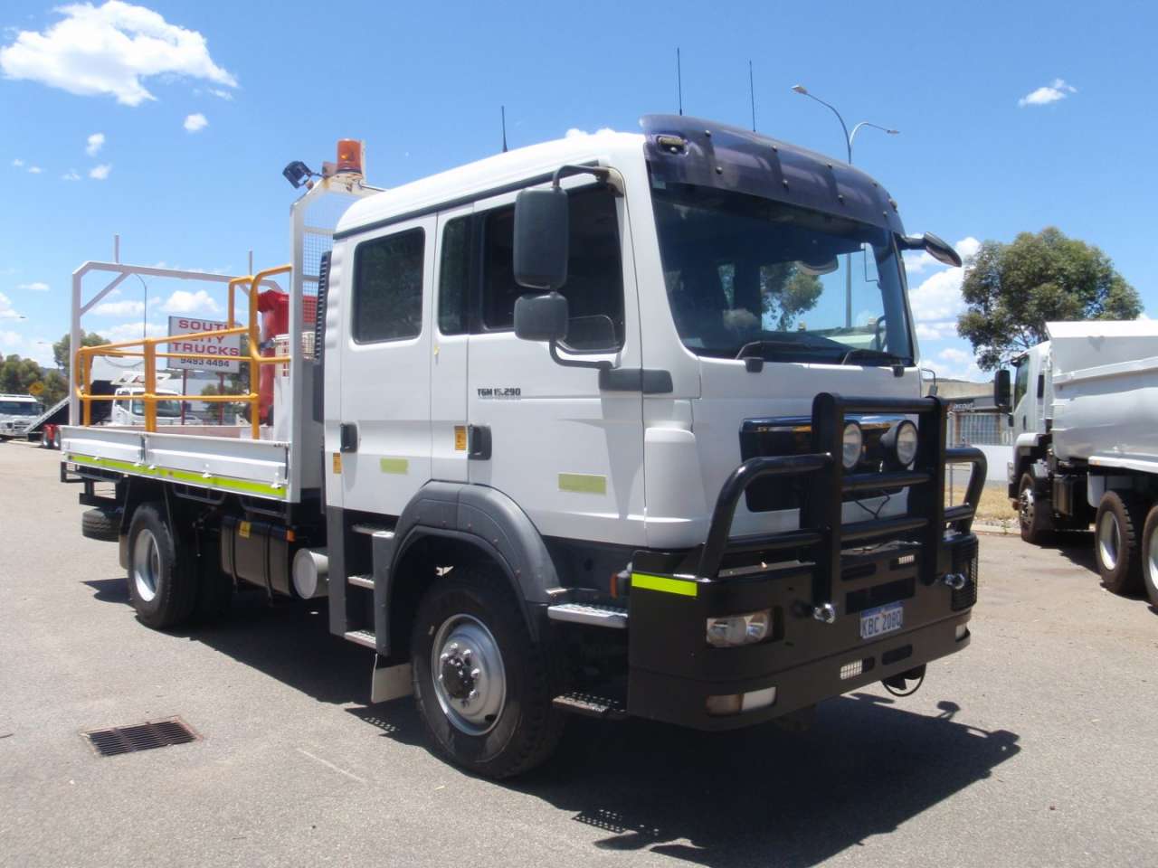 2013 MAN TGM15-290 CREW CAB 4 X 4 ,290 HP TURBO INTER COOL, 6 SPEED AUTOMATIC ,AIR BAG SUSPENSION,STEEL TRAY DROP SIDS 5000 X 2400 mm, 500 Lts FUEL CELL WITH HOSE REEL, GVM 15000 AND GCM24500.