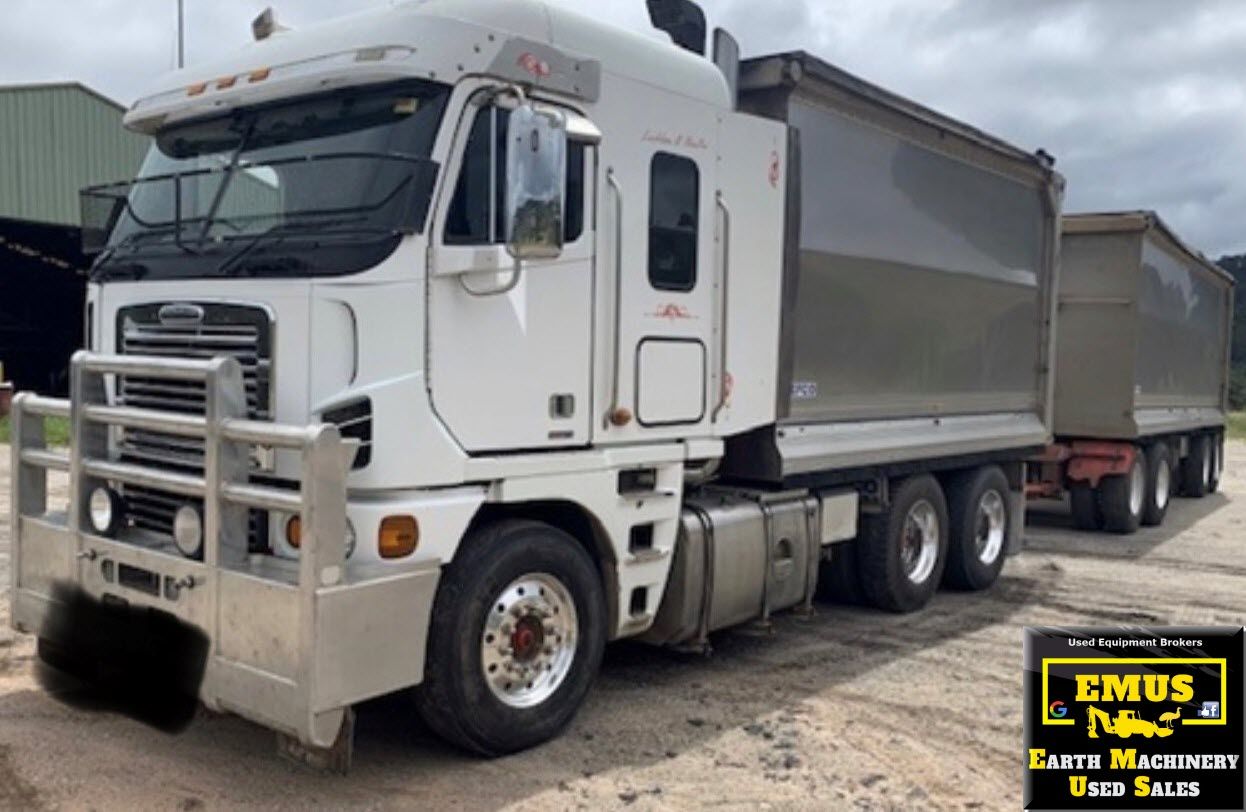 Truck Information – Alloy bins, tyres are good condition, 8 foot sides, weight scales, 110 model sleeper, 46,000 lbs diffs, trailer has 2 way tail gate with grain chute & airbag.
